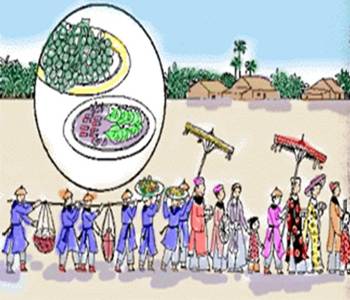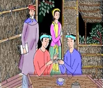 Về đời Hùng-vương, họ Cao sinh được hai trai giống nhau như đúc tên là Tân và Lang. Người ngoài không biết ai là anh, ai là em. Thầy đồ họ Lưu cho đem bát cơm, đôi đũa ra. Lang nhường cho Tân ăn trước. Thầy đồ biết Tân là anh nên đem con gái gả cho Tân, thật là đẹp đôi!