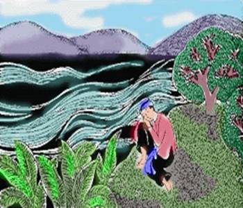Đến khi Tân, người anh, biết em bỏ đi không về, liền vội lên đường đi t́m em. Tân đi khắp mọi nơi, hỏi thăm rất nhiều người mà vẫn không thấy Lang. Sau Tân lại đến bờ sông và biết em đă chết. Tân thương khóc em, đập đầu vào gốc cây mà chết rồi hóa thành tảng đá vôi.